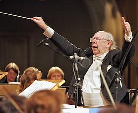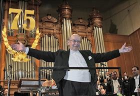 Дирижер, профессор Московской государственной консерватории имени П.И.Чайковского Геннадий Рождественский (слева) во время своего юбилейного концерта в Большом зале консерватории (БЗК).
