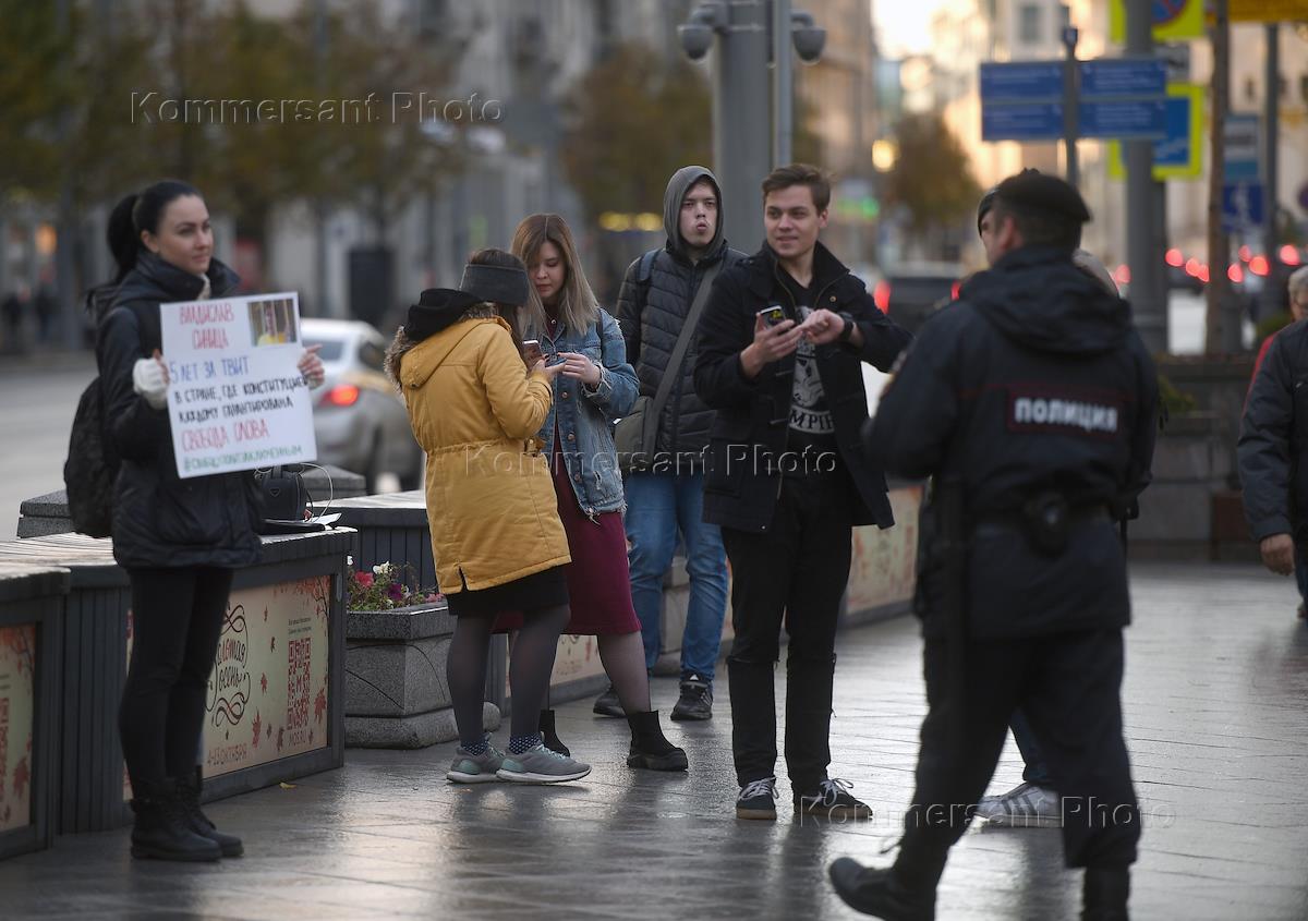 One-person protest in support of the "Case 212" prisoners on Tverskaya Street.