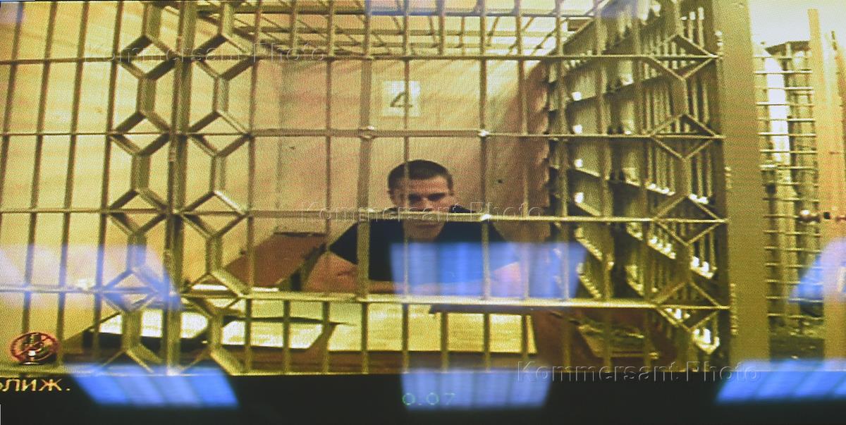 Moscow City Court hearing on the appeal from judgment in the case of participant of the July 27, 2019 rally in Moscow Ivan Podkopaev (on screen), accused of committing violence which does not put in danger life or health against representative of authority.