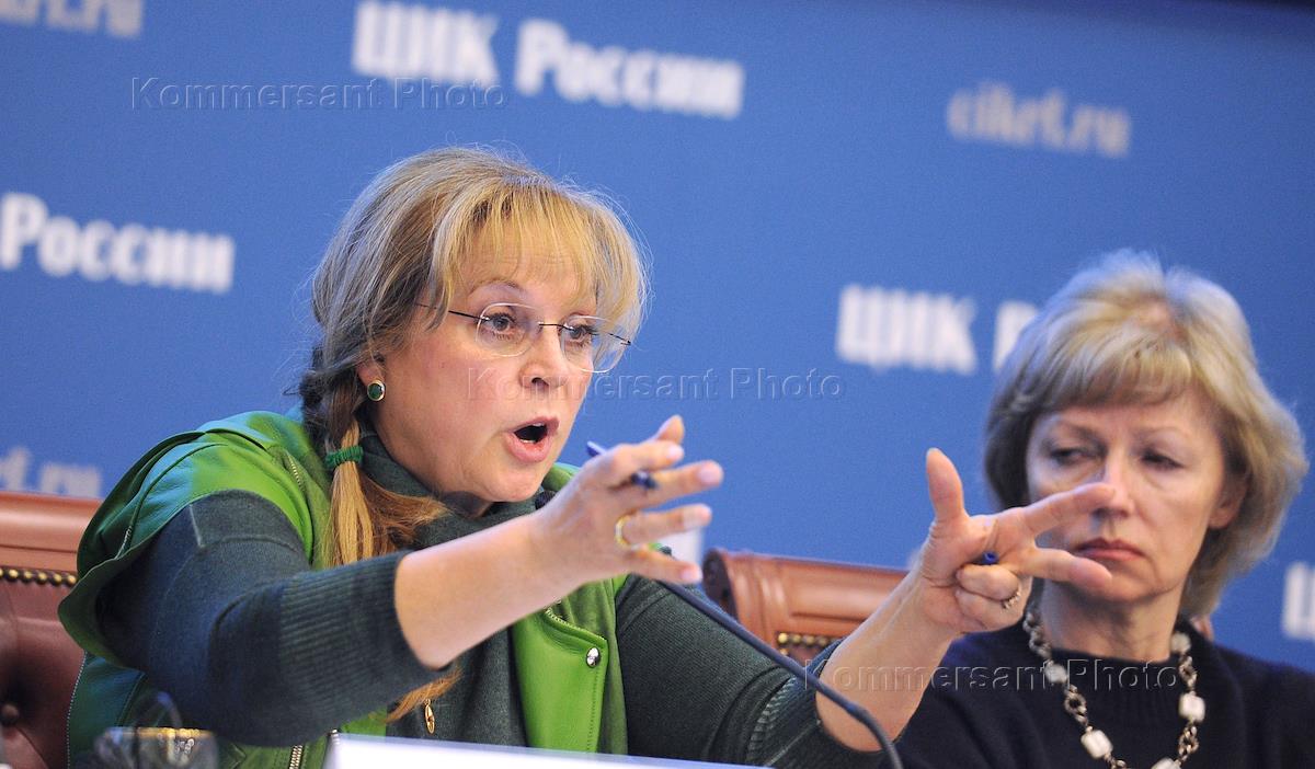 Expanded meeting of the Scientific Advisory Board of the Russian Central Election Commission (CEC). Chairman of the Central Election Commission Ella Pamfilova, left, member of the Central Election Commission Evgeniya Orlova during the meeting.