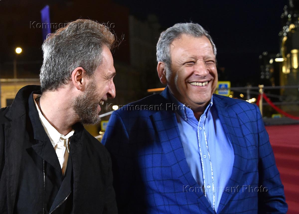 Торжественная церемония вручения телевизионной премии "ТЭФИ 2019" в номинации "Вечерний прайм" в Московском театре мюзикла. Актер Оскар Кучера (слева) и директор журнала "Ералаш" Борис Грачевский (справа) перед началом церемонии.