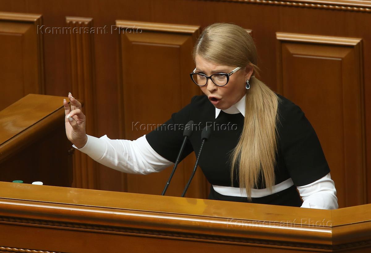 The meeting of the Verkhovna Rada. The leader of the All-Ukrainian Union "Fatherland" Yulia Tymoshenko during the meeting.