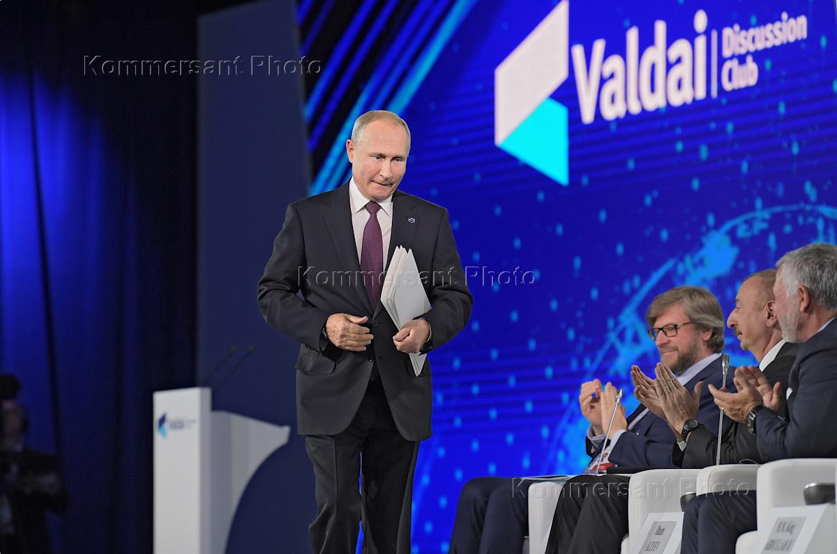 Рабочая поездка президента России Владимира Путина в Сочи. Заседание Валдайского клуба. Президент России Владимир Путин во время пленарной сессии на тему "Мировое устройство: взгляд с Востока" в гостиничном комплексе "Поляна. 1389".