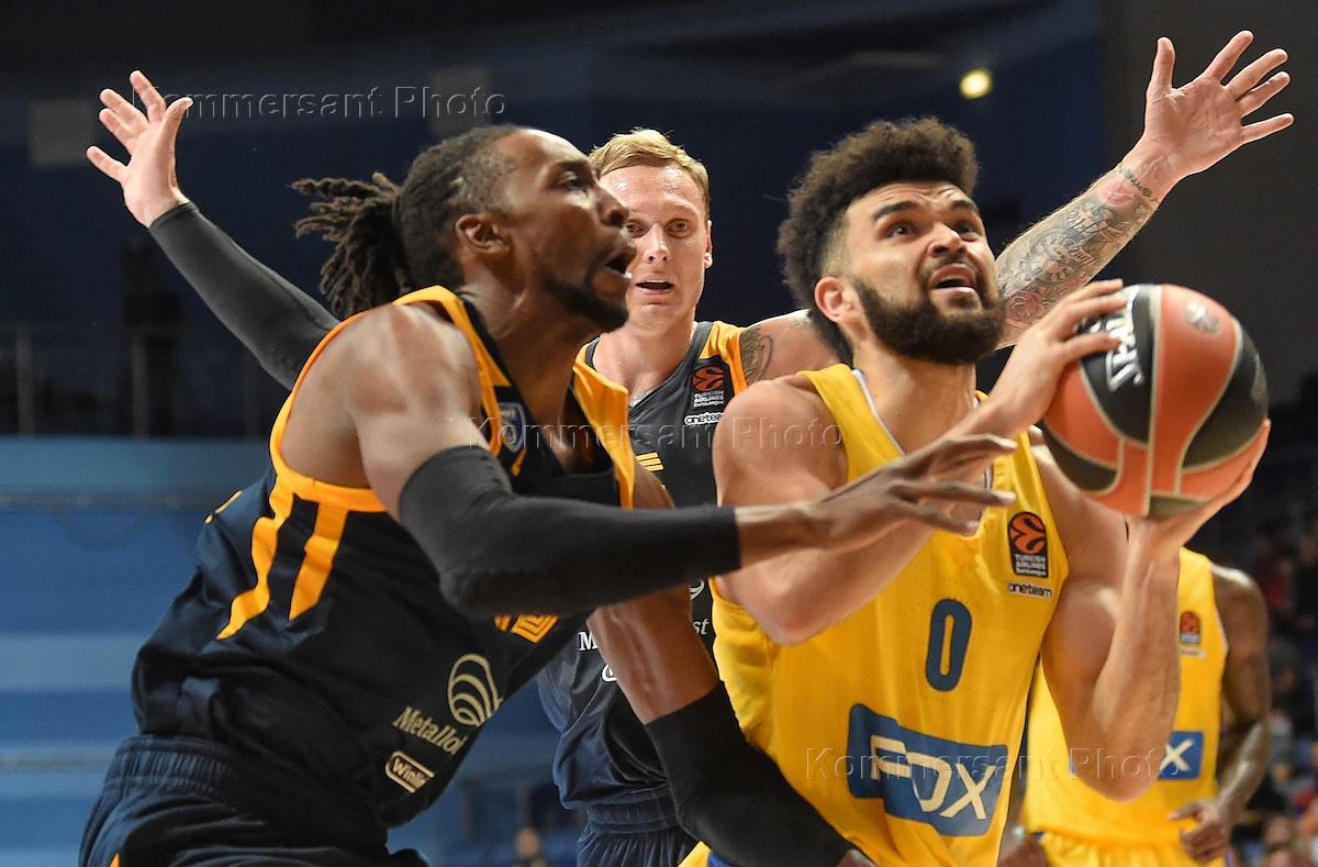 Euroleague Basketball. Match between Khimki (Khimki, Russia) and Maccabi (Tel Aviv, Israel) in the Mytishchi Arena. Khimki's Geremy Evans, left, during the match.