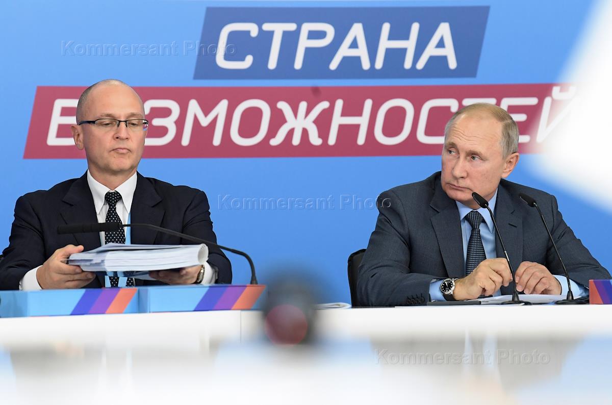 Рабочая поездка президента России в Сочи. Президент России Владимир Путин (справа) и первый заместитель руководителя Администрации президента России Сергей Кириенко (слева) во время первого расширенного заседания наблюдательного совета платформы "Россия - страна возможностей" на базе образовательного центра "Сириус".