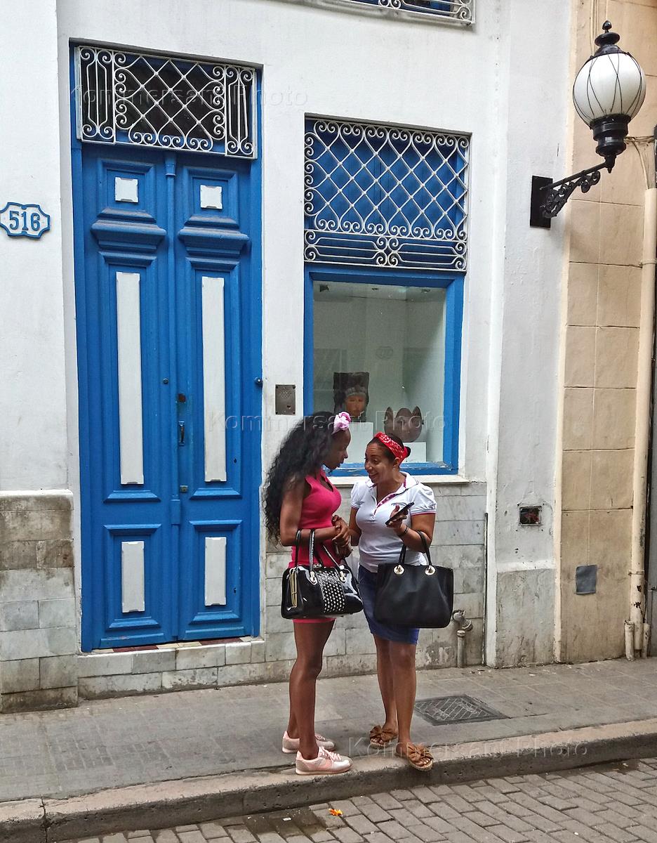 Views of Havana. People passing by on the street. Portraits of the revolution leaders of the country on a wall.