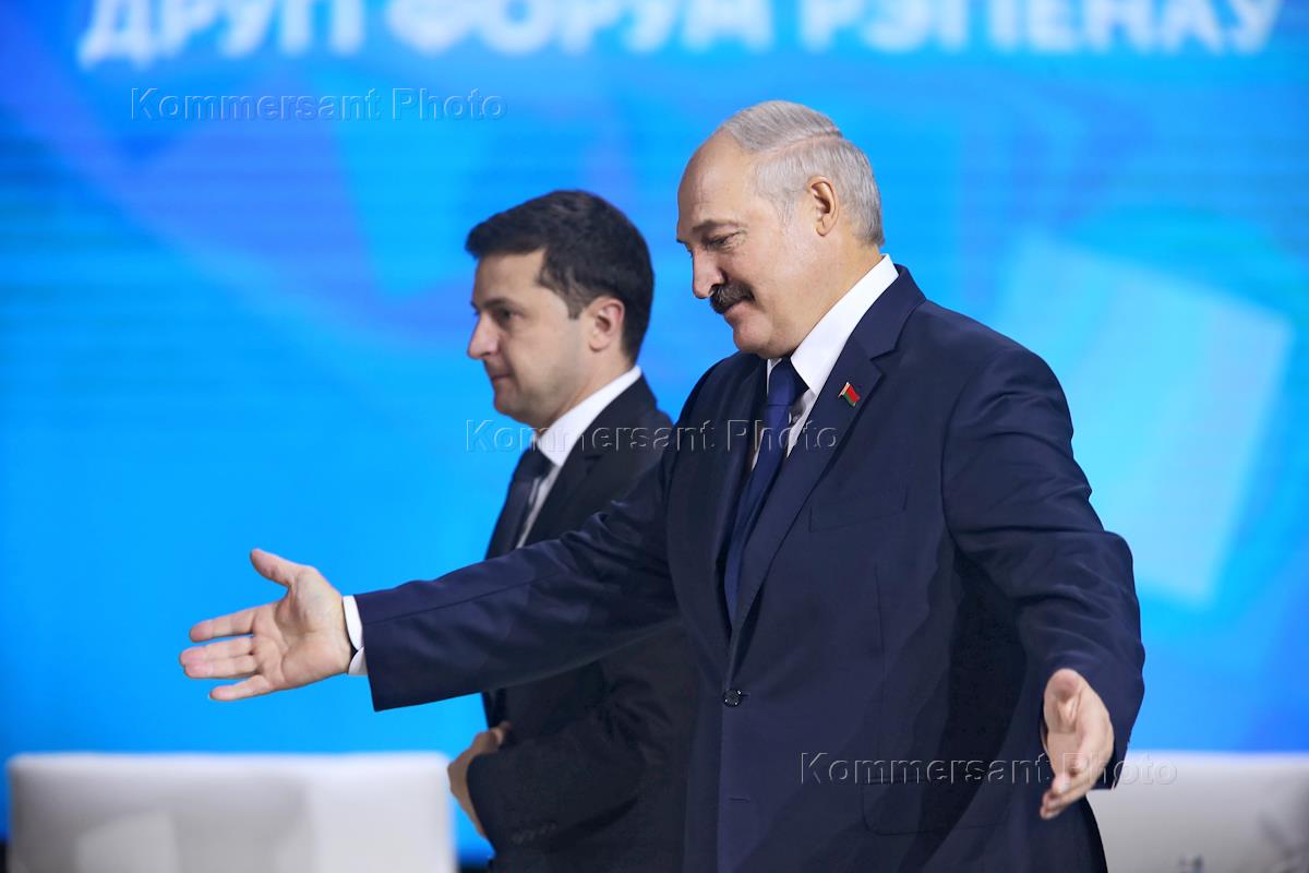 Forum of the Regions of Ukraine and the Republic of Belarus. President of Belarus Alexander Lukashenko, right, and President of Ukraine Vladimir Zelensky, left, during a meeting at the forum.