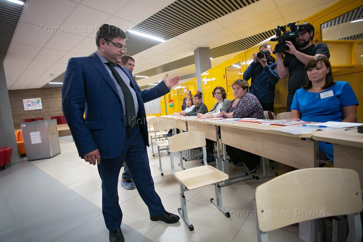 A briefing by the Chief of Staff of Yekaterinburg Administration Ilya Zakharov on conducting a survey about the construction site of St. Catherine’s Cathedral. The briefing took place at school No. 1.