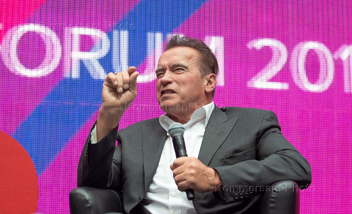Форум Synergy Global Forum. Актер, бывший губернатор Калифорнии Арнольд Шварценеггер во время выступлении на форуме.