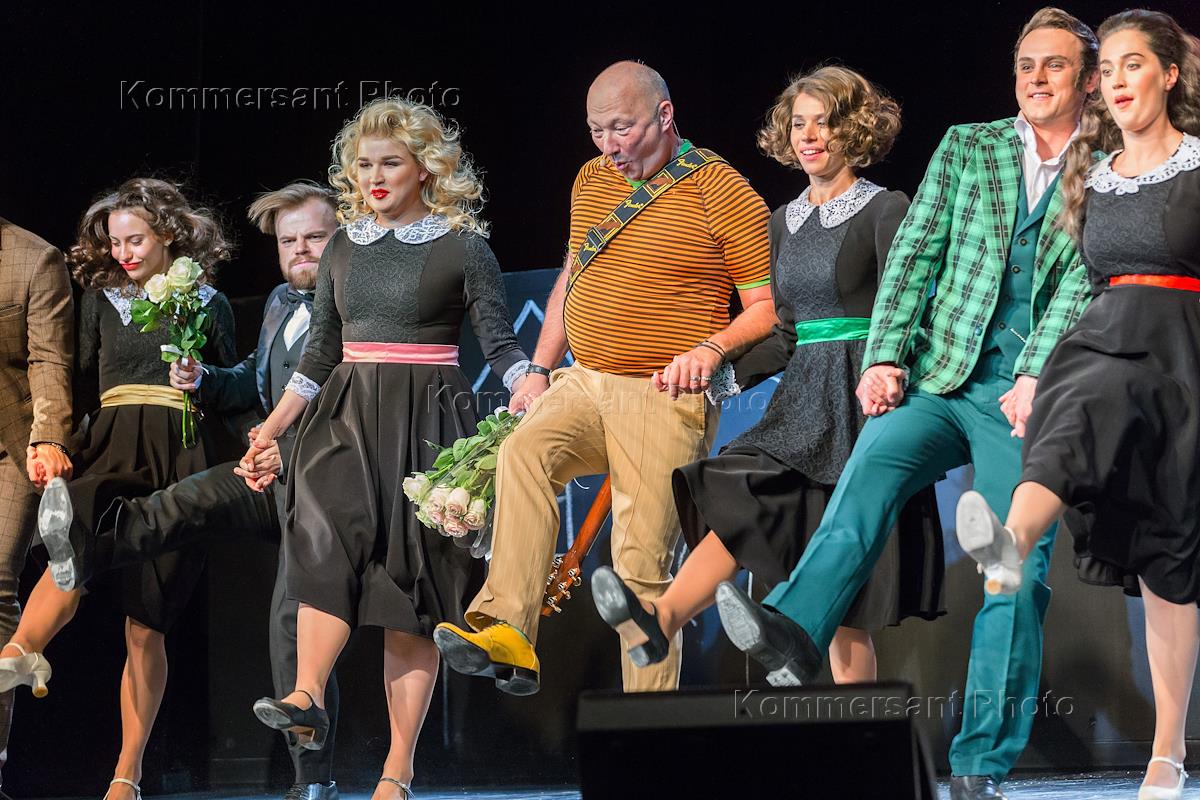 Торжественный вечер, посвященный 80-летию со дня основания Театра Эстрады имени Аркадия Райкина. Артисты театра во время выступления на юбилейном вечере.