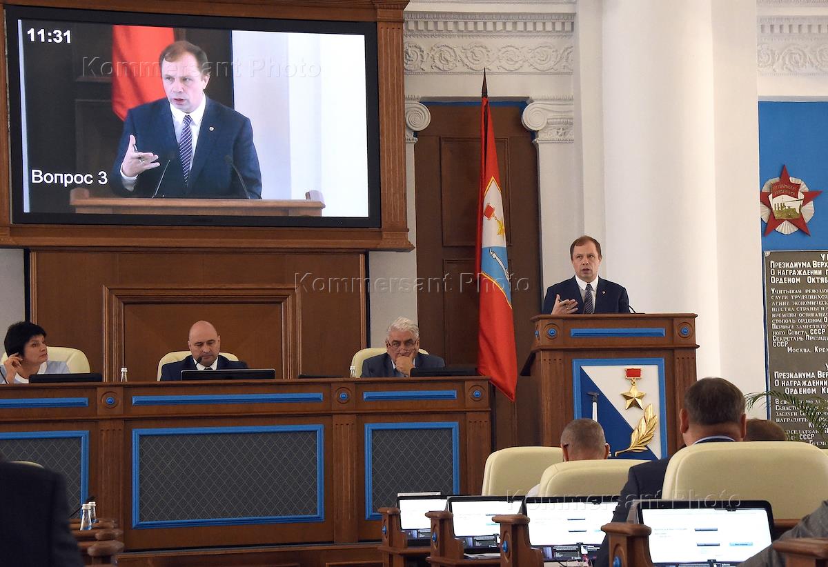 Meeting of the Sevastopol Legislative Assembly. Chairman of the Sevastopol Legislative Assembly Vladimir Nemtsev (right) during the meeting.