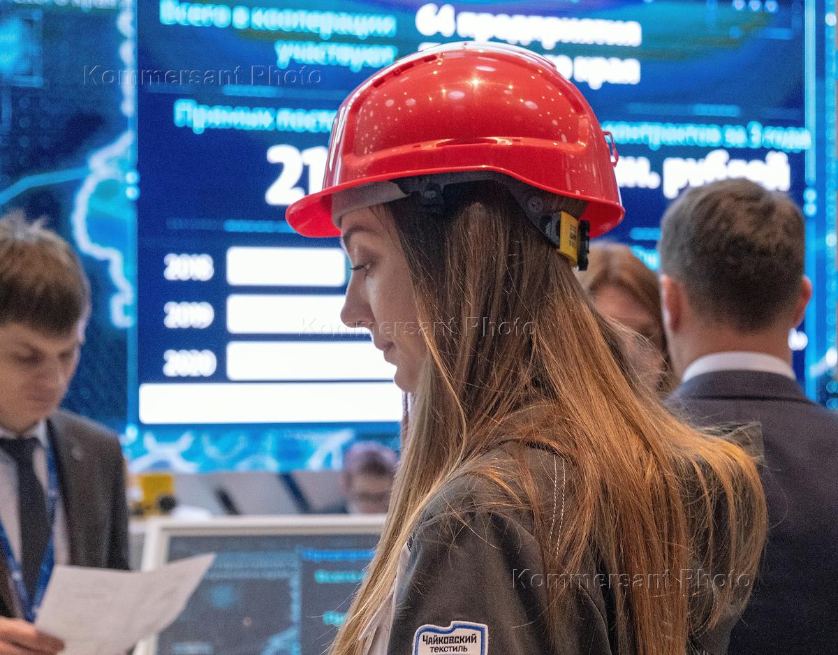 IX Петербургский международный газовый форум в Конгрессно-выставочном центре EXPOFORUM. Жанровая фотография. Участники на выставочных площадках форума.