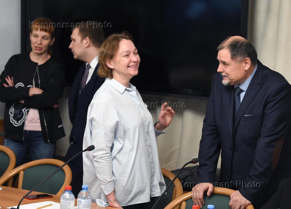 An expanded meeting of the Committee of the State Duma Committee on Informational Policy, Technologies and Communications on "Regulation of Internet resources that occupy a dominant position in the information space." Head of Roskomnadzor Legal Department Maria Smelyanskaya (left) and Head of Rospotrebnadzor Consumer Rights Protection Department Oleg Prusakov (right) before the meeting.