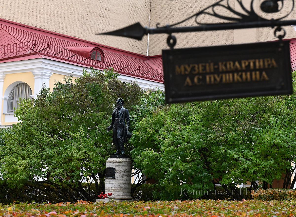 Виды Санкт-Петербурга. Памятник Александру Сергеевичу Пушкину во дворе дома № 12 на набережной реки Мойки, где расположен Мемориальный музей-квартира А.С.Пушкина