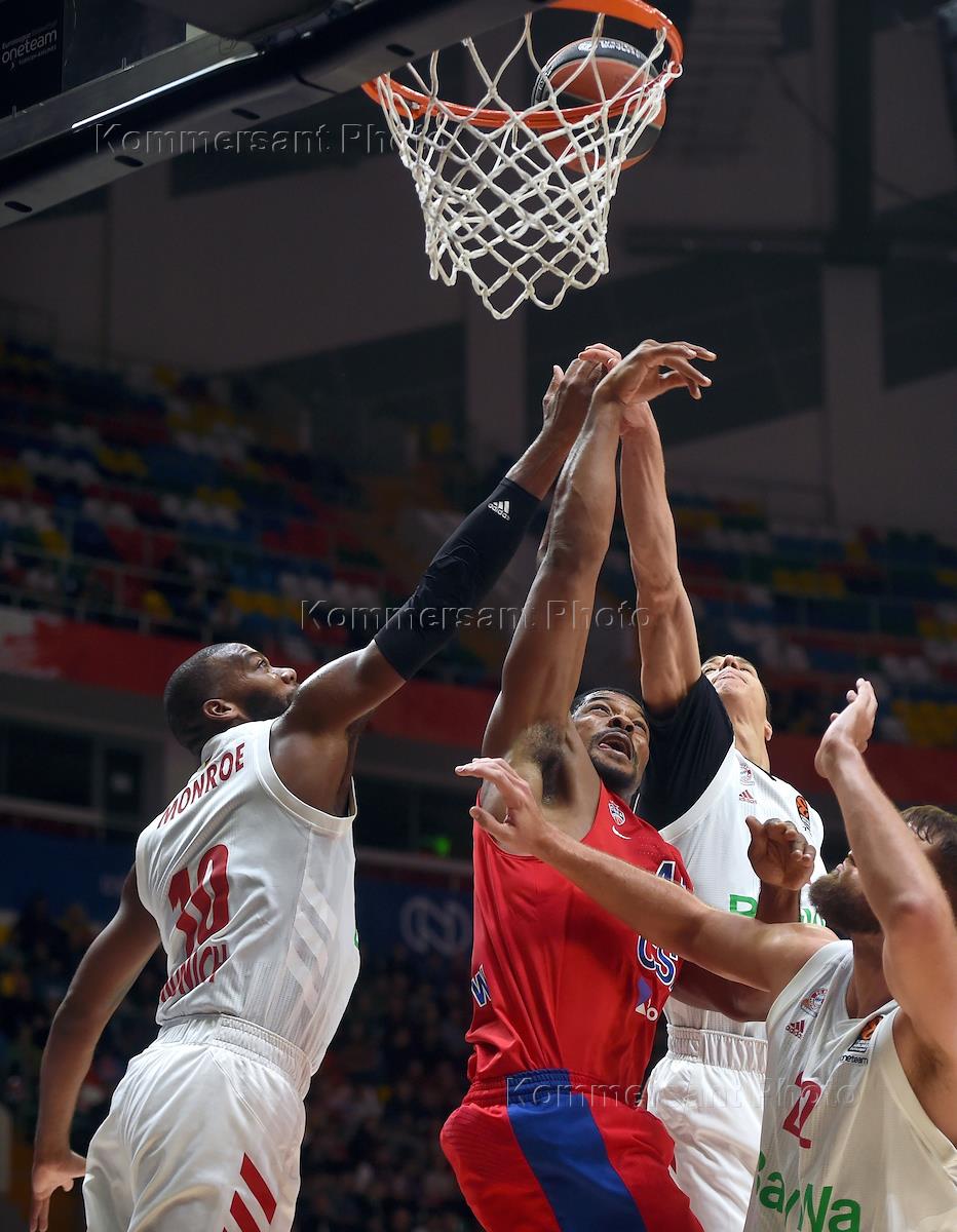Euroleague Basketball 2019/2020. Round 2. Match between CSKA (Russia, Moscow) and Bayern (Germany, Munich) at the Megasport Arena. CSKA's Will Clyburn, second from right, during the match.