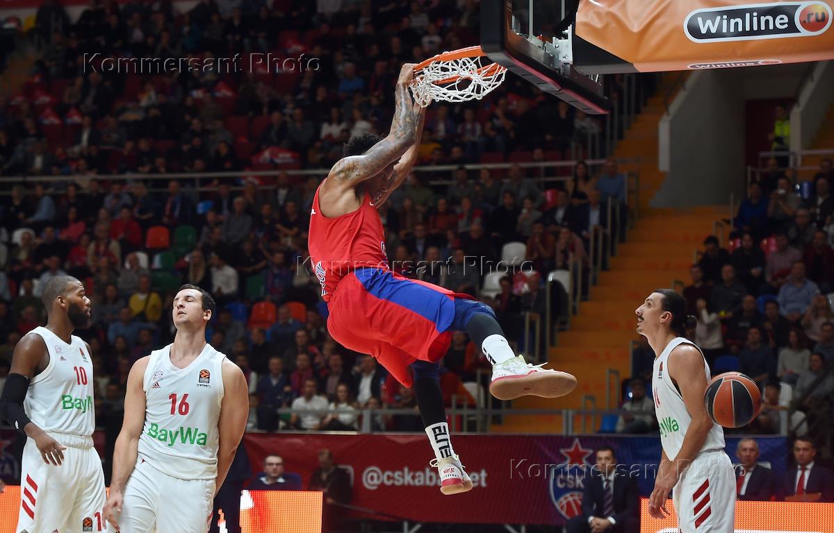 Euroleague Basketball 2019/2020. Round 2. Match between CSKA (Russia, Moscow) and Bayern (Germany, Munich) at the Megasport Arena. CSKA's Will Clyburn, second from right, during the match.