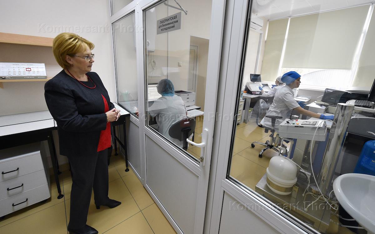 The official opening of the new wing of the FSBI "A.N. Ryzhikh State Scientific Centre of Coloproctology" of the Russian Ministry of Health. Russian Health Minister Veronika Skvortsova (left) at the opening ceremony.