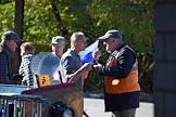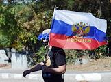 Жанровая фотогарфия. Мужчина с цветами и флагом России.