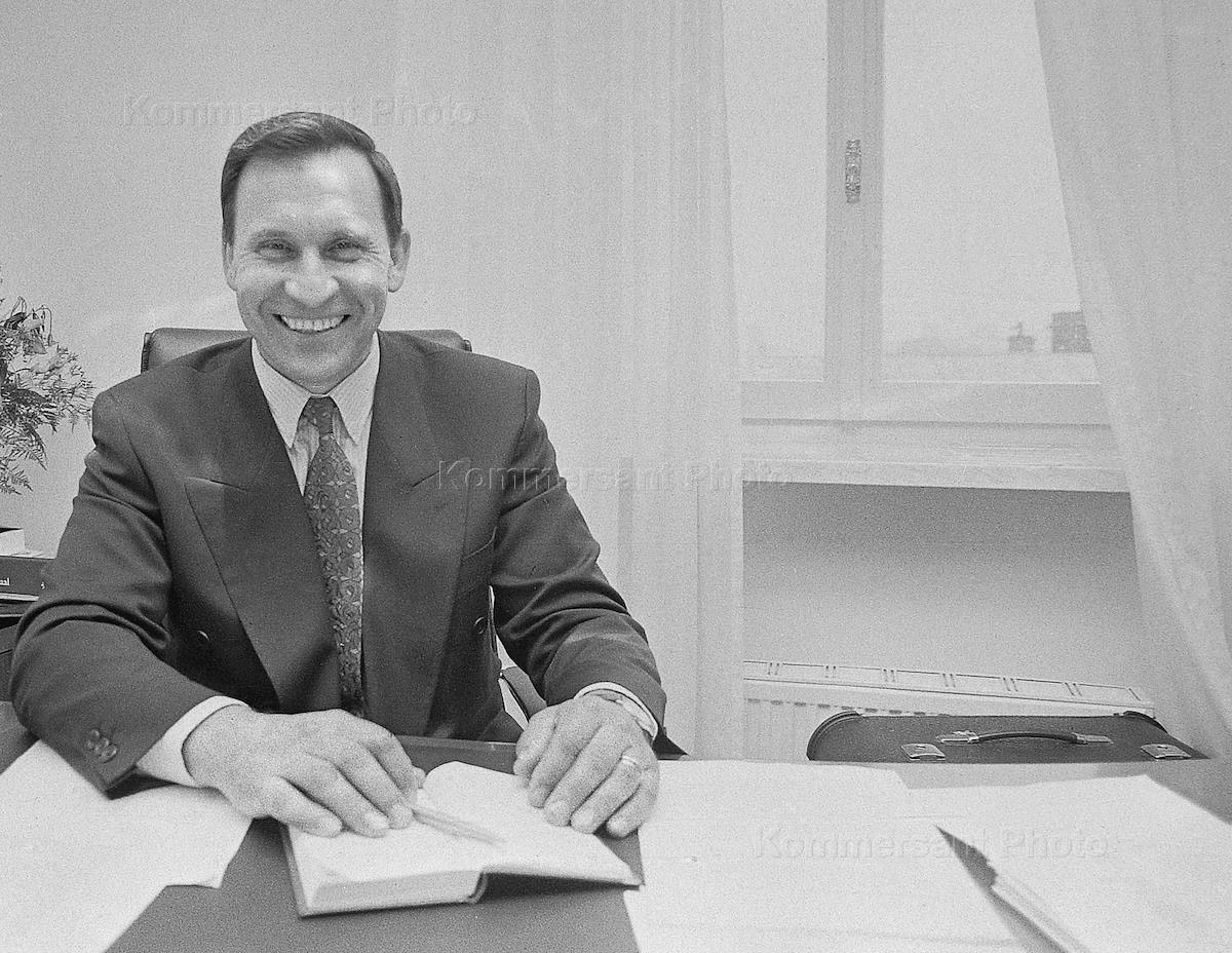 Президент "Инкомбанка" Владимир Виноградов (справа) и глава холдинга "Медиа-Мост" Владимир Гусинский (слева) во время встречи.