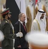 Рабочая поездка президента России Владимира Путина в Объединенные Арабские Эмираты (ОАЭ). Переговоры президента России Владимира Путина с наследным принцем Абу‑Даби, заместителем Верховного главнокомандующего вооруженными силами ОАЭ Мухаммедом бен Заидом Аль Нахайяном состоялись Во дворце Каср аль-Ватан. Президент России Владимир России (слева) и наследный принц Абу-Даби, заместитель верховного главнокомандующего вооруженными силами ОАЭ Мухаммед бен Заид Аль Нахайян (справа) на церемонии официальной встречи.