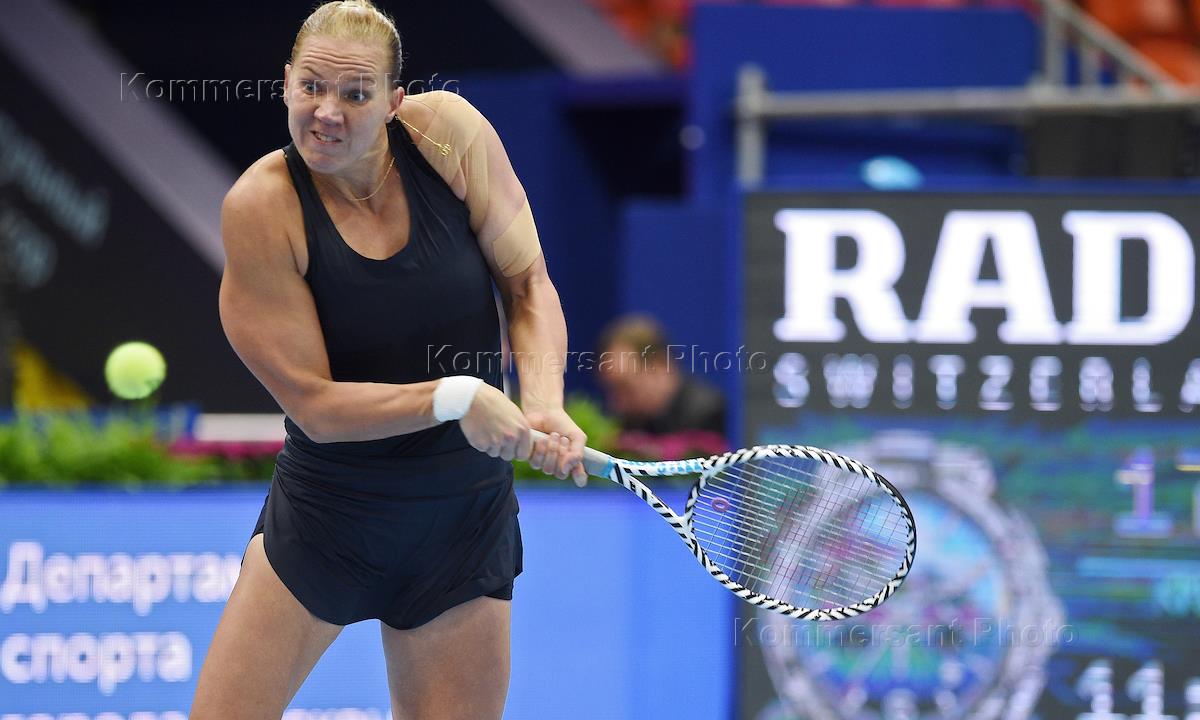 Международный теннисный турнир "ВТБ Кубок Кремля" в ледовом дворце "Крылатское". Эстонская теннисистка Кайа Канепи во время матча с нидерландской теннисисткой Кики Бертенс.