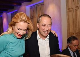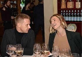 Иммерсивный ужин с итальянским поваром Давиде Олдани (Michelin 1*), посвященный 120-летию компании S.Pellegrino в ресторане Cantinetta Antinori. Ресторатор Аркадий Новиков (справа) и супруга генерального директора компании Ритуал.ру Олега Шелягова Виктория Шелягова (слева) на ужине.