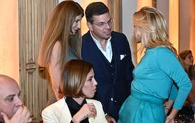Иммерсивный ужин с итальянским поваром Давиде Олдани (Michelin 1*), посвященный 120-летию компании S.Pellegrino в ресторане Cantinetta Antinori. Главный редактор журнала Vogue Russia Мария Федорова (третий слева), ресторатор Аркадий Новиков (в центре) и чрезвычайный и полномочный посол Италии в России Паскуале Терраччано (справа) на ужине.