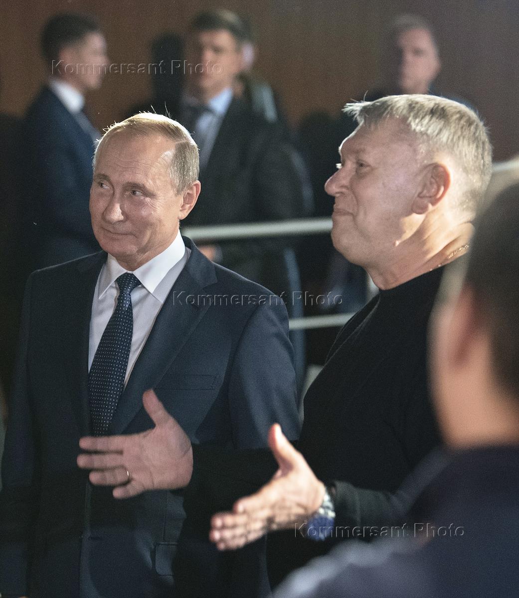 Президент России Владимир Путин (справа) и ректор Всероссийского государственного института кинематографии им. С.А. Герасимова (ВГИК) Владимир Малышев (слева) во время встречи со студентами ВГИК.