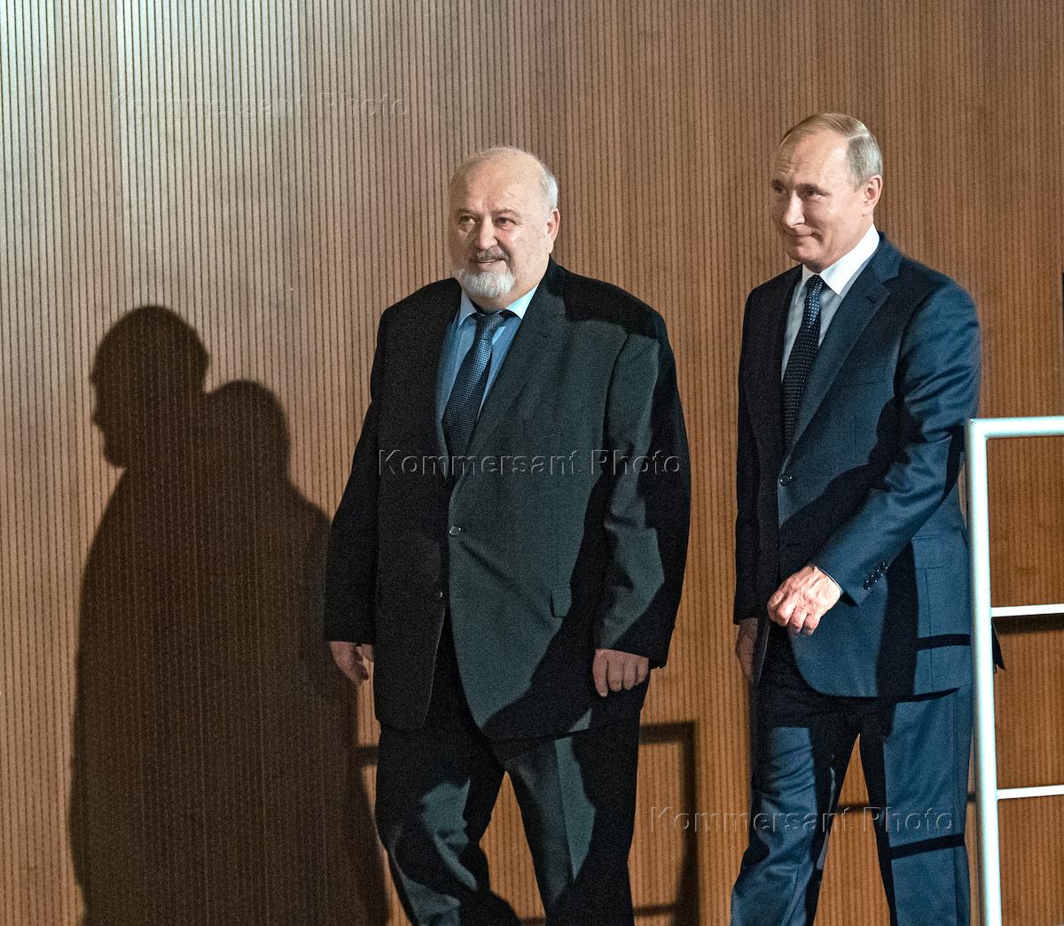 Russian President Vladimir Putin (right) and Gerasimov Institute of Cinematography (VGIK) rector Vladimir Malyshev (left) during a meeting with VGIK students.
