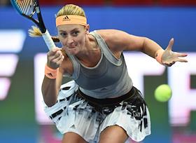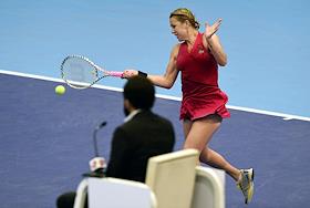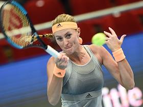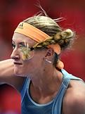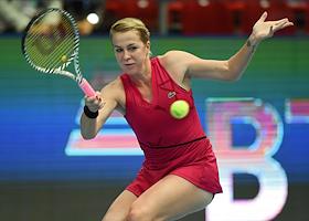XXX Международный теннисный турнир "ВТБ Кубок Кремля" в ледовом дворце "Крылатское". Полуфинал. Одиночный разряд среди женщин. Французская теннисистка Кристина Младенович во время матча против швейцарской теннисистки Белинды Бенчич.