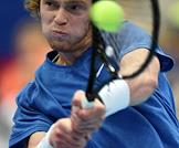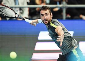 XXX Международный теннисный турнир "ВТБ Кубок Кремля" в ледовом дворце "Крылатское". Полуфинал. Одиночный разряд среди мужчин. Хорватский теннисист Марин Чилич во время матча против российского теннисиста Андрея Рублева.
