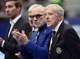XXX Международный теннисный турнир "ВТБ Кубок Кремля" в ледовом дворце "Крылатское". Церемония чествования российских победителей теннисного турнира "ВТБ Кубок Кремля" прошлых лет. Президент Федерации тениса России Шамиль Тарпищев (в центре) во время церемонии.