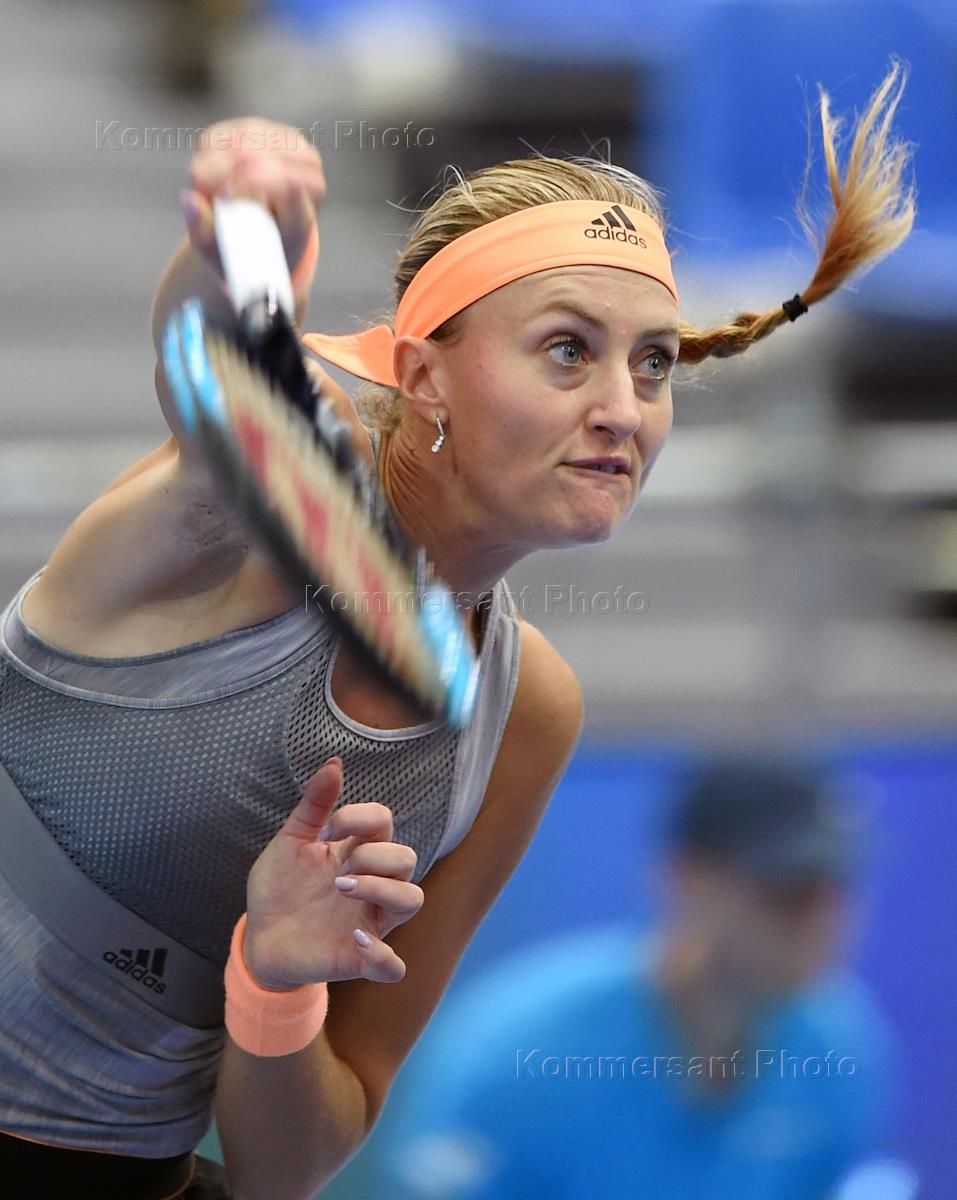 XXX Международный теннисный турнир "ВТБ Кубок Кремля" в ледовом дворце "Крылатское". Чешская теннисистка Каролина Мухова во время полуфинального матча одиночного разряда среди женщин против российской теннисистки Анастасии Павлюченковой.