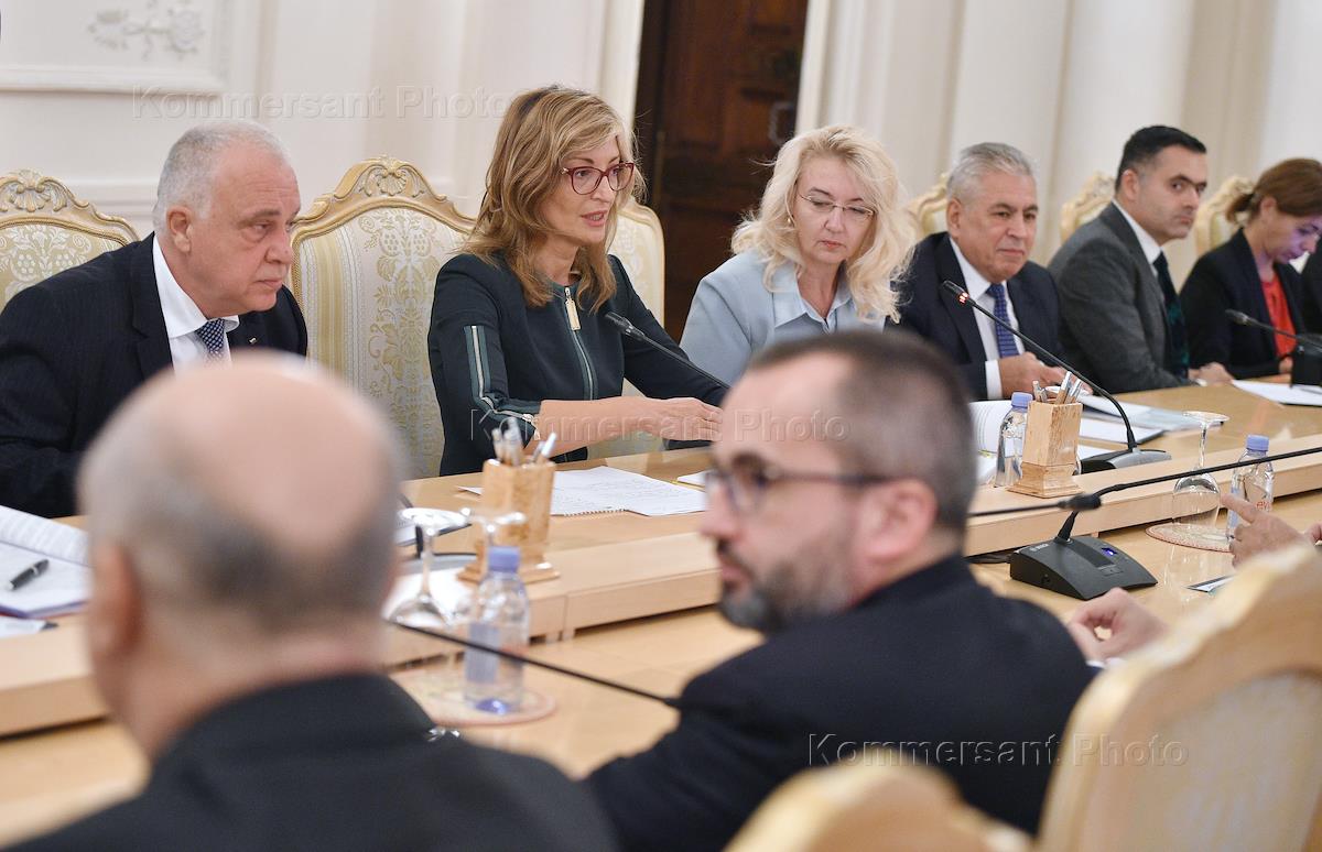 Вице-премьер, министр иностранных дел Республики Болгария Екатерина Захариева (в центре) во время переговоров с министром иностранных дел России Сергеем Лавровым в Доме приемов МИД.