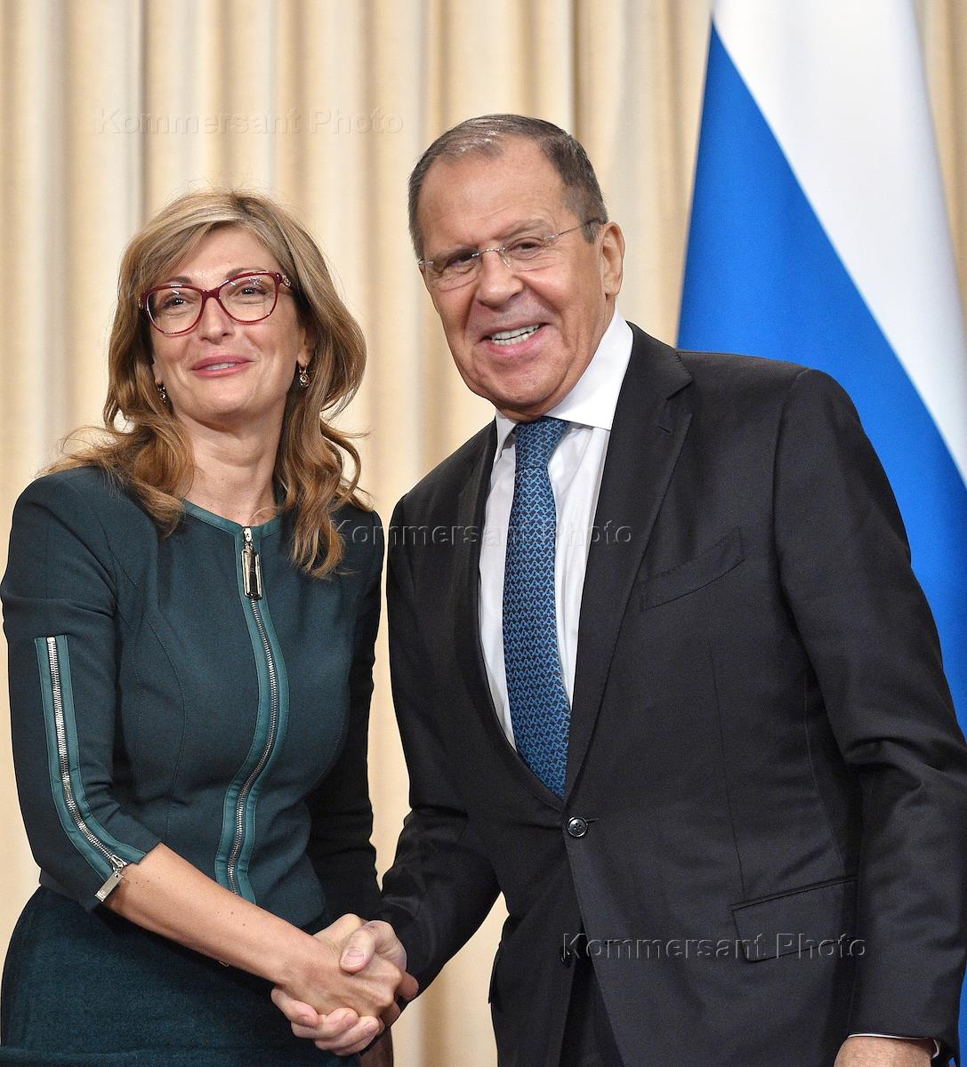 Вице-премьер, министр иностранных дел Республики Болгария Екатерина Захариева (справа) во время переговоров с министром иностранных дел России Сергеем Лавровым в Доме приемов МИД.