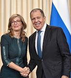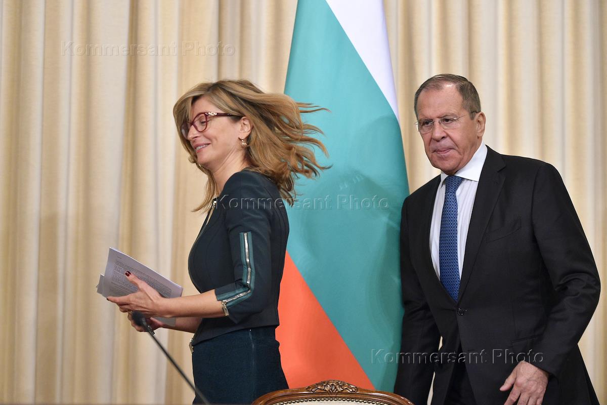 Министр иностранных дел России Сергей Лавров (справа) и вице-премьер, министр иностранных дел Республики Болгария Екатерина Захариева (слева) перед началом переговоров в Доме приемов МИД.