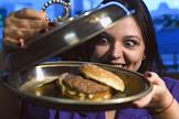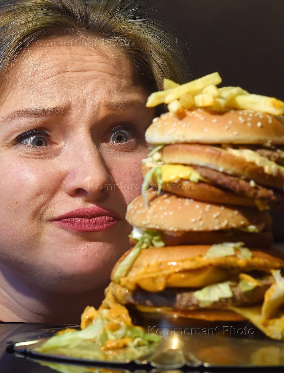 Жанровая фотография. Фаст-фуд. Девушка ест бургер.