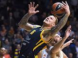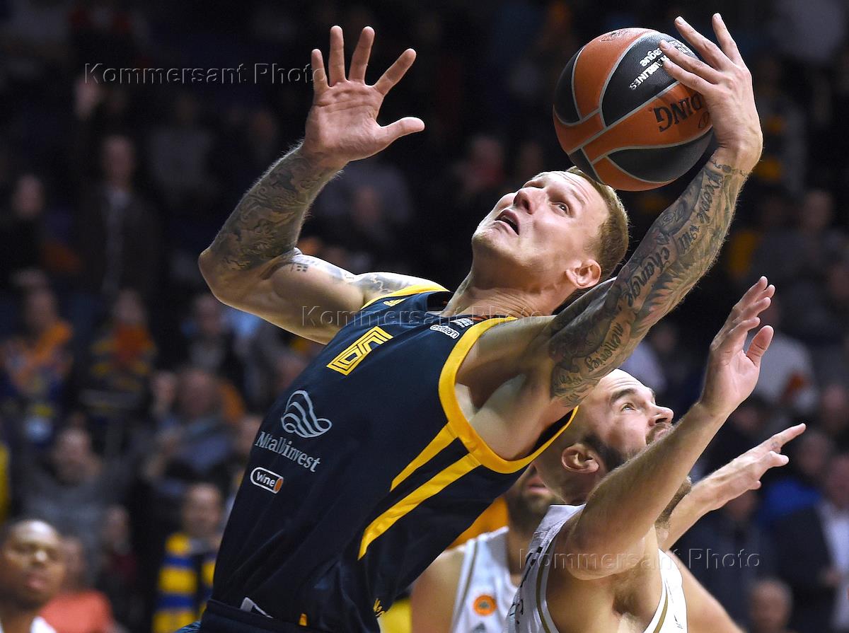 Euroleague Basketball. Match between Khimki (Russia, Khimki) and Panathinaikos (Greece, Athens) at the Mytishchi Arena. Khimki's Janis Timma (left) during the match.