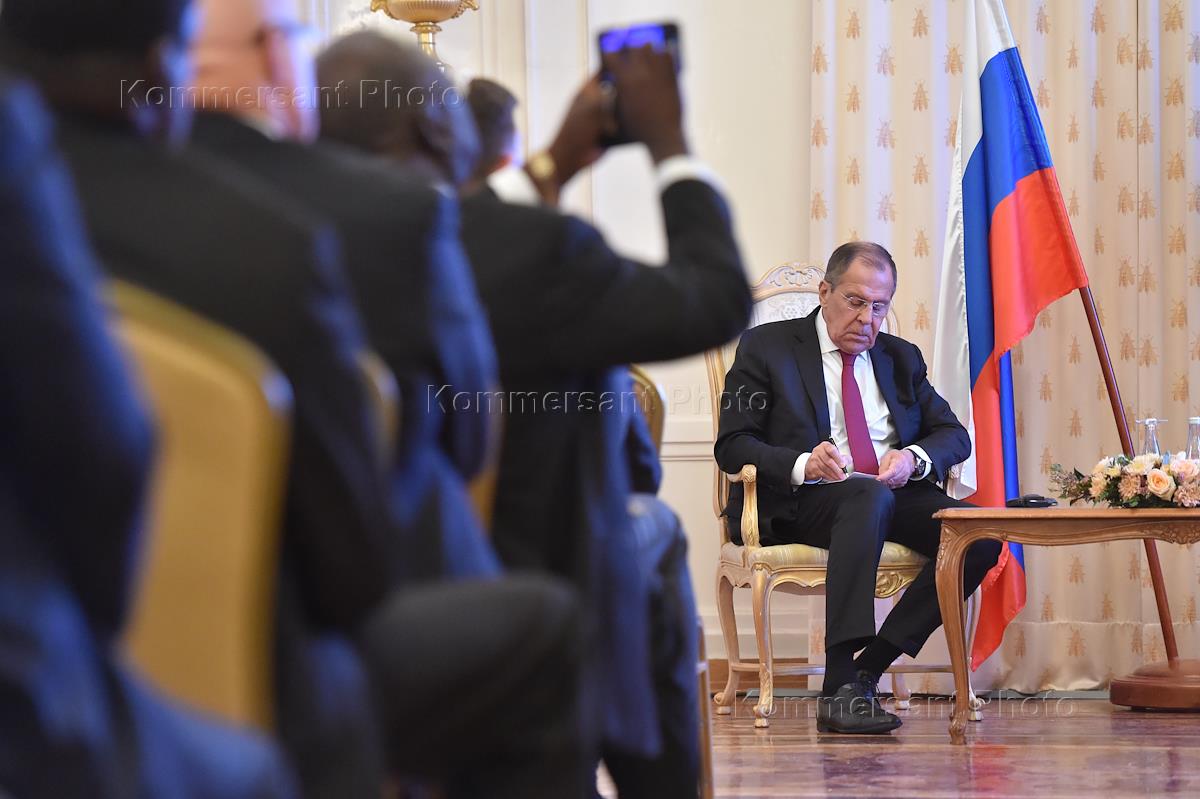 Презентация инвестиционного и экономического потенциала Удмуртской Республики в Доме приемов МИД России. Министр иностранных дел России Сергей Лавров (в центре) во время презентации.