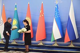 Рабочая поездка председателя правительства России Дмитрия Медведева в Узбекистан. Слева направо: премьер Киргизии Мухаммедкалый Абылгазиев, премьер Госсовета КНР Ли Кэцян, премьер-министр Узбекистана Абдулла Арипов, председатель Правительства России Дмитрий Медведев, премьер-министр Таджикистана Кохир Расулзода, министр иностранных дел Пакистана Шах Мехмуд Куреши и премьер-министр Белоруссии Сергей Румас во время церемонии совместного фотографирования перед началом заседания в государственной резиденции "Куксарой".
