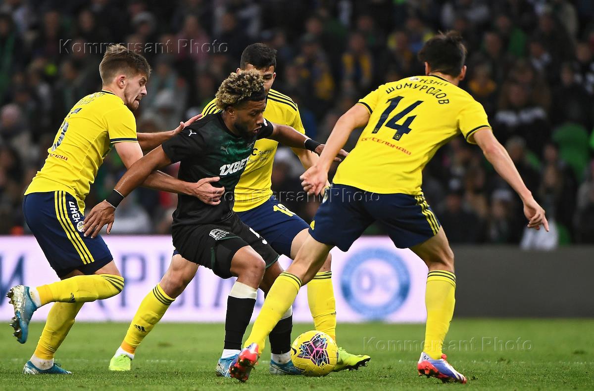 Российская Премьер-лига (РПЛ). Чемпионат России по футболу 2019/2020. 15-й тур. Матч между командами "Краснодар" (Краснодар) и "Ростов" (Ротсов-на-Дону). Игрок команды "Краснодар" Тонни Вильена (в центре) во время матча.