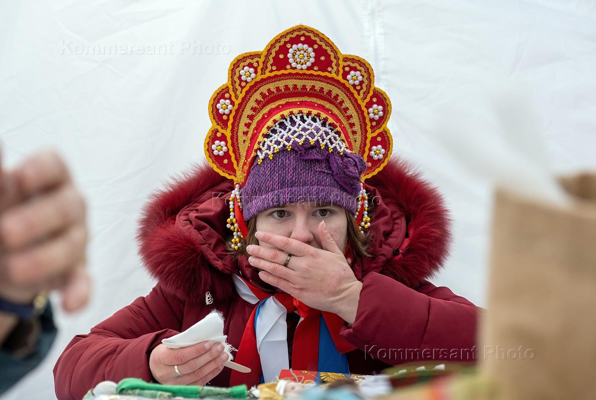 Посетители мастер-классов по традиционным ремеслам на празднование Дня народного единства на площадке перед БКЗ "Октябрьский" в Санкт-Петербурге.