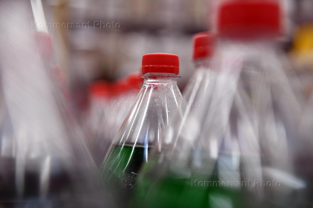 Церемония открытия восстановленного после пожара гипермаркета "Лента" на Обводном канале, 118. Жанровая фотография. Пластиковые бутылки с напитками.