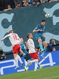 Лига чемпионо УЕФА. Группа G. Матч между командами "Зенит" (Санкт-Петербург, Россия) - "РБ Лейпциг" (Лейпциг, Германия) на стадионе "Газпром Арена". Игрок команды "Зенит" Магомед Оздоев (в центре) во время матча.