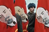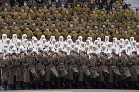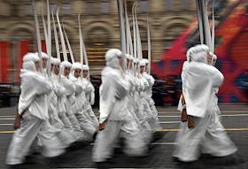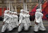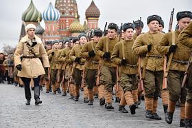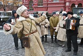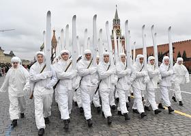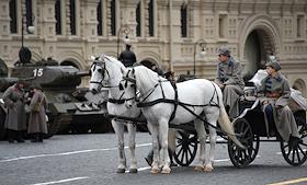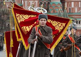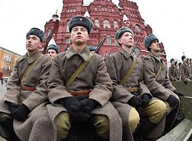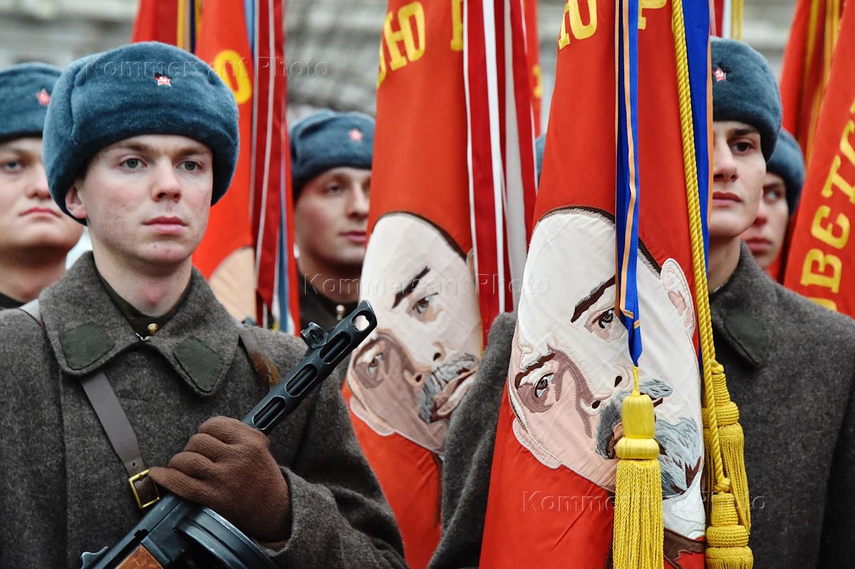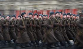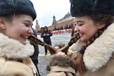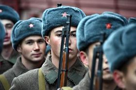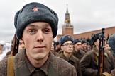Участники торжественного марша, посвященного легендарному параду 7 ноября 1941 года на Красной площади.
