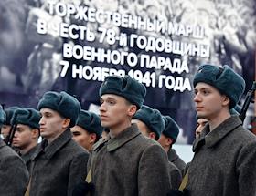 Торжественный марш, посвященный 78-й годовщине военного парада 7 ноября 1941 года, прошел на Красной площади. Участники во время марша.
