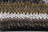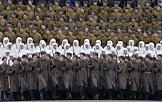 Торжественный марш, посвященный 78-й годовщине военного парада 7 ноября 1941 года, прошел на Красной площади. Участницы перед началом марша.