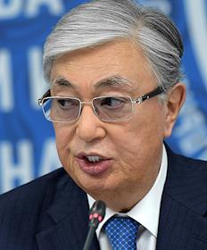 Рабочая поездка Владимира Путина в Омск. XVI Форум межрегионального сотрудничества России и Казахстана. Президент Казахстана Касым-Жомарт Токаев во время пленарного заседания.