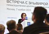 Брифинг председателя Центрального Банка России Эльвиры Набиуллиной в Ассоциации европейского бизнеса (АЕБ) в пресс-центре отеля "Балчуг Кемпински". Председатель Центрального Банка России Эльвира Набиуллина во время брифинга.
