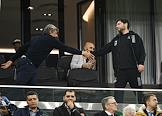 Лига Европы УЕФА. Матч между командами "Краснодар" (Краснодар, Россия) — "Трабзонспор" (Трабзон, Турция) на стадионе "Краснодар Арена". Президент футбольного клуба "Краснодар" Сергей Галицкий (слева во втором ряду) и старший тренер команды "Краснодар" Мурад Мусаев (справа во втором ряду) на трибуне во время матча.